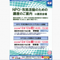 【NPO・市民活動の立ち上げと法人化講座】 ◎日時:12月12日(金)14:00-15:30 【NPO法人の解散の方法講座】 ◎日時:12月13日(土)10:30-12:00 ◎会場:いずれも酒田市交流ひろば NPO・市 …