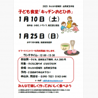 ◎開催日・内容: 1月10日(土)新年会 かるた、トランプ、紙芝居と昔話 1月25日(日)おやつ作り体験、茶席抹茶提供 ※フードパントリーも同時開催 いずれも、ランチタイムは12:00-13:30 ◎会 場:みんなの居場 …
