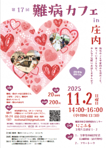 難病・障がいコミュニティ にじいろ より「第17回難病カフェin庄内」のお知らせ