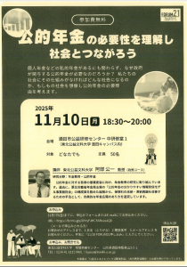 東北公益文科大学 地域共創センターより「FORUM21 公的年金の必要性を理解し社会とつながろう」のお知らせ