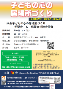 SR会(Support for Relation子どもの自立を支援する会)より「子どもの心の居場所づくり 学習会&保護者相談会 」のお知らせ