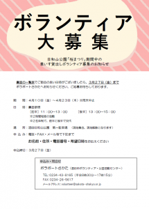 日和山公園桜まつり期間中の車いす無料貸し出しの受付対応をしてくださる方を募集しています。